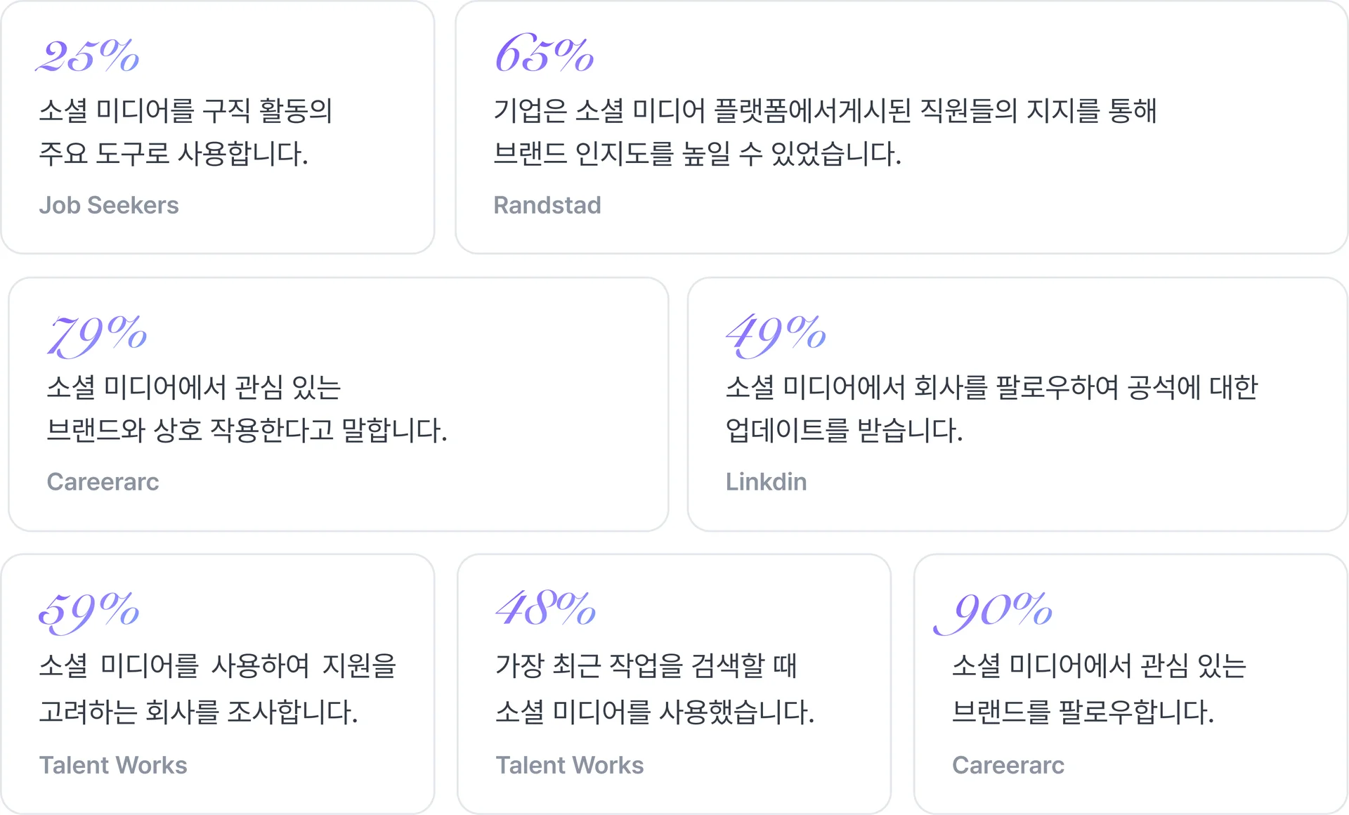 소셜 미디어는 채용 브랜드를 구축하고 지원자를 유치하려는 회사에서 전세계적으로 가장 널리 사용되는 채널 중 하나입니다. 소셜 미디어가 강력한 채널인 이유는 다음과 같습니다.
