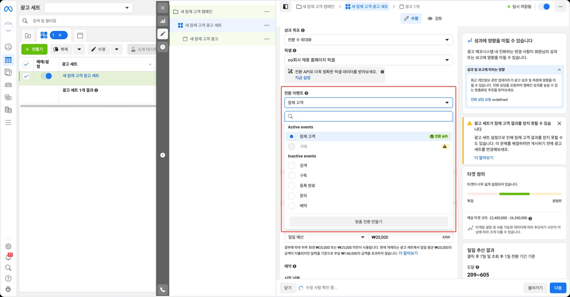 Facebook Pixel 이벤트 기반으로 캠페인의 맞춤 타겟과 유사 타겟을 만들어 보겠습니다.