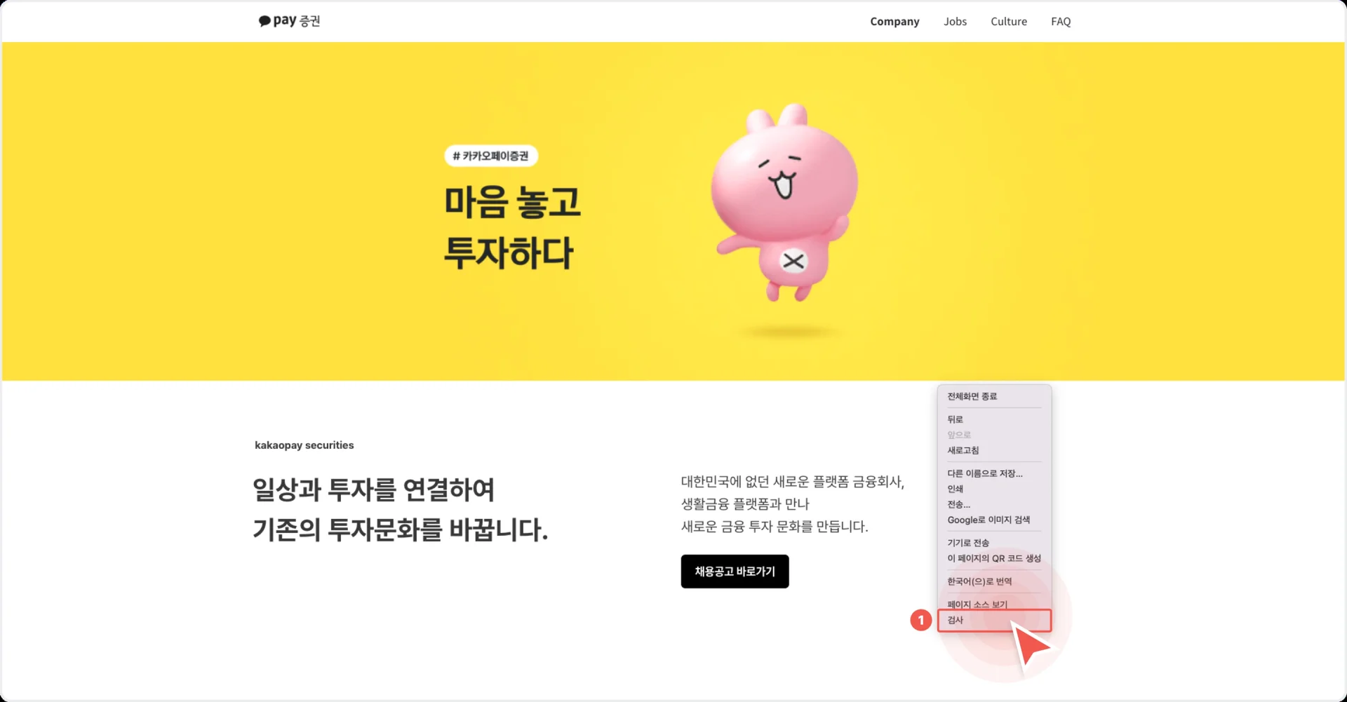 [채용 홈페이지] > [마우스 오른쪽 클릭] > [검사]