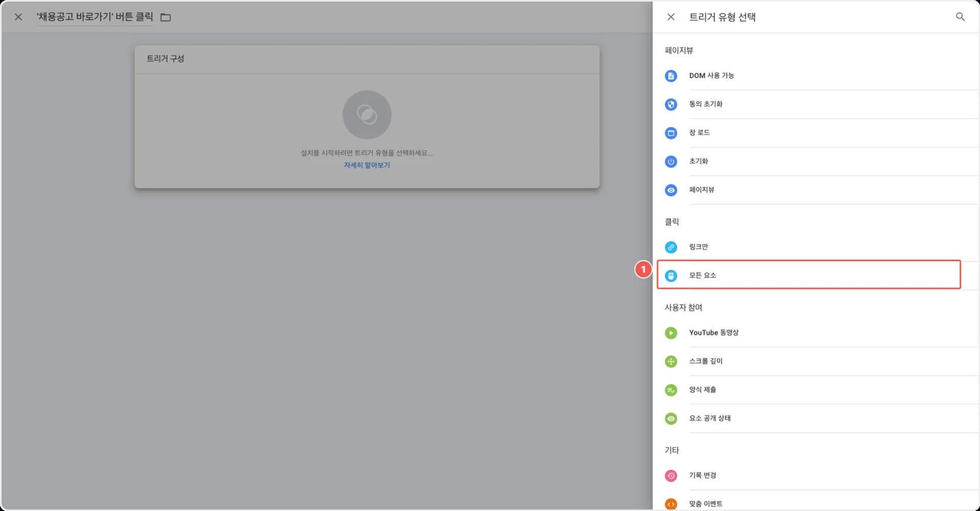 채용공고 바로가기 버튼 클릭이라는 이벤트 데이터를 수집하기 위해 GTM에서 트리거와 태그를 만들어 봅시다.