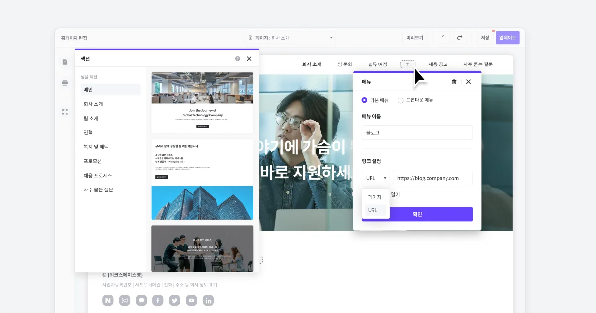 여러분의 회사를 지원자가 기억할 수 있도록 채용 홈페이지를 제작하세요.